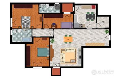 Dalla porta blindata si accede in un grande ingresso che si apre sul soggiorno, locale che dispone di un piccolo sfogo esterno. La cucina abitabile è sicuramente l'ambiente più caratterizzante di questa abitazione, in virtù della sua generosa dimensione e, oltre ad un piccolo balconcino, del ripostiglio annesso ideale come dispensa.