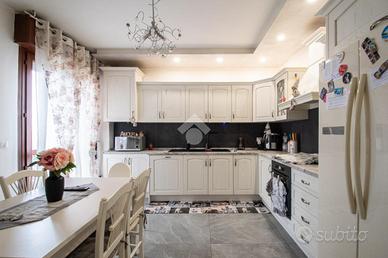 Ad accoglierci vi è un comodo disimpegno che collega la cucina abitabile servita di balcone al luminoso soggiorno anch'esso fornito di sfogo esterno. Spostandoci nel reparto notte vi sono due camere da letto matrimoniali, una camera singola, un ripostiglio ad uso lavanderia ed un bagno finestrato fornito di sanitari e box doccia.