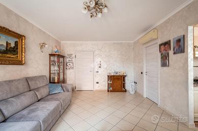 Internamente la soluzione è composta da: ingresso sull'ampio soggiorno, cucina abitabile separata, balcone, disimpegno notte, tre camere da letto e doppi servizi finestrati completi di sanitari, box doccia e vasca da bagno.