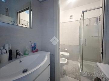 Attiguo alla zona giorno il primo bagno cieco, con box doccia.