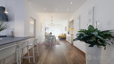 Questa proprietà offre un'ampia metratura suddivisa in quattro locali, ideale per chi cerca spazi ben distribuiti con una concezione moderna. L'ingresso è nell'ampia zona giorno open space dotata di due balconi e composta da una cucina a vista ed una spaziosa zona living. Tramite disimpegno si accede alla zona notte dove troviamo due camere matrimoniali di cui una dotata di balcone e bagno finestrato con box doccia.