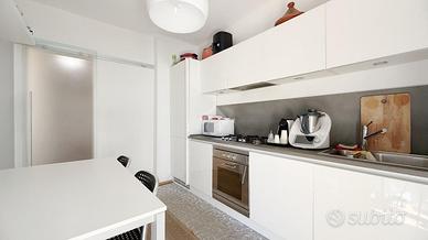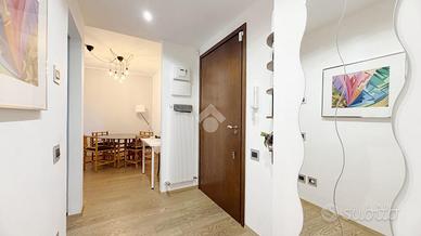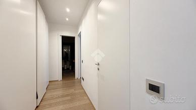 La disposizione è funzionale e moderna con l'ingresso che si apre nella zona giorno composta da una cucina abitabile e un ampio salotto. La zona notte offre due camere matrimoniali e un bagno con ampia doccia walk-in.