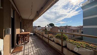 Uno dei punti di forza di questo appartamento è l'ampio terrazzo coperto, accessibile da tutte le stanze. Qui è possibile passare momenti di convivialità e relax con famiglia e amici durante tutto l'arco della giornata e tutto il periodo annuale vista l'esposizione verso sud che garantisce sempre grande luminosità.