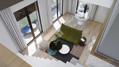 In zona servita, a due passi da tutti i servizi del paese, proponiamo la RESIDENZA FUTURA che nasce dallo stile architettonico moderno e curato nei dettagli costruttivi con spazi interni funzionali e il piacere di vivere in abitazioni con il soggiorno a doppia altezza. La RESIDENZA FUTURA nasce con il pensiero di un edificio di sole TRE unità abitative completamente AUTONOME e SENZA SPESE CONDOMINIALI e CERTIFICATE IN CLASSE A3. L' unità immobiliare al piano primo ed ultimo, servito da ascensore, presenta la caratteristica unica del suo genere della zona giorno a doppia altezza che serve una camera al piano con bagno, il tutto arricchito da una loggia angolare, e la seconda camera, il bagno e lo studio al piano superiore abitabile con affaccio sul soggiorno. La scala interna di DESIGN e le travi in legno a vista lo rende ancora più affascinante! Capitolato di alto livello: parapetti in vetro, riscaldamento autonomo e a pavimento, ventilazione meccanica, aria condizionata canalizzata, serramenti in pvc, tapparelle elettriche, finiture interne di pavimenti e rivestimenti a scelta del cliente da un capitolato di alta qualità. Possibilità di acquisto del BOX SINGOLO con abbinato POSTO AUTO PRIVATO e CANTINA al prezzo di € 35.000,00.