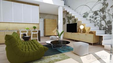 In zona servita, a due passi da tutti i servizi del paese, proponiamo la RESIDENZA FUTURA che nasce dallo stile architettonico moderno e curato nei dettagli costruttivi con spazi interni funzionali e il piacere di vivere in abitazioni con il soggiorno a doppia altezza. La RESIDENZA FUTURA nasce con il pensiero di un edificio di sole TRE unità abitative completamente AUTONOME e SENZA SPESE CONDOMINIALI e CERTIFICATE IN CLASSE A3. L' unità immobiliare al piano primo ed ultimo, servito da ascensore, presenta la caratteristica unica del suo genere della zona giorno a doppia altezza che serve una camera al piano con bagno, il tutto arricchito da una loggia, e la seconda camera, il bagno e lo studio al piano superiore abitabile con affaccio sul soggiorno. La scala interna di DESIGN e le travi in legno a vista lo rende ancora più affascinante! Capitolato di alto livello: parapetti in vetro, riscaldamento autonomo e a pavimento, ventilazione meccanica, aria condizionata canalizzata, serramenti in pvc, tapparelle elettriche, finiture interne di pavimenti e rivestimenti a scelta del cliente da un capitolato di alta qualità. Possibilità di acquisto del BOX SINGOLO con abbinato POSTO AUTO PRIVATO e CANTINA al prezzo di € 35.000,00.