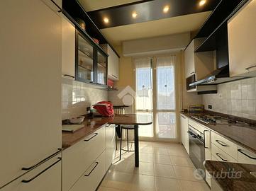 In zona residenziale e vicina a tutti i servizi del paese, proponiamo AMPIO e LUMINOSO appartamento di QUATTRO LOCALI con cucina abitabile, TERRAZZINO e balcone. L'appartamento è posizionato al piano secondo, non servito da ascensore, ed è caratterizzato da una doppia esposizione solare est - ovest e una visuale aperta che garantisce all'immobile una notevole luminosità. Nella scala condominale entrano sole sei famiglie e questo è garanzia di tranquillità, così grazie anche alla caratteristica unica nel suo genere di essere LIBERO SUI QUATTRO LATI senza pareti confinanti con altri appartamenti. Internamente l'ambiente di ingresso serve la grande zona giorno composta da un ampio soggiorno e una comoda cucina abitabile, arricchita da un TERRAZZINO loggiato a cui si accede da entrambi i locali, e una stanza di generose dimensioni, da utilizzare come ulteriore salotto oppure come studio o camera da letto, dotato di balcone con visuale interna al cortile comune. Il disimpegno zona notte serve la prima grande camera matrimoniale, le seconda camera matrimoniale di notevoli dimensioni, il bagno spazioso dotato di vasca e doccia e infine il comodo ripostiglio. L'immobile è stato oggetto negli anni 2000 di vari interventi di ristrutturazione come il rifacimento degli infissi in alluminio con doppi vetri, il rifacimento del bagno, della cucina e dei balconi e l'installazione dell'impianto di aria condizionata. Il contesto in cui è insirito l'immobile è in buonissime condizioni grazie al fatto che gran parte delle facciata è rivestita in mattoncini a vista. Completa la proprietà la cantina di oltre 10 mq e il box auto singolo per il quale aggiungere l'importo di euro 18.000. LIBERO A BREVE! Attestato di prestazione energetica in fase di elaborazione