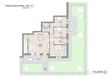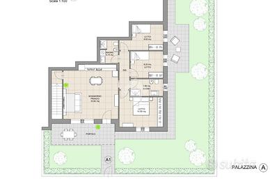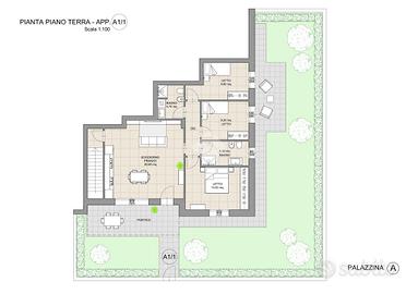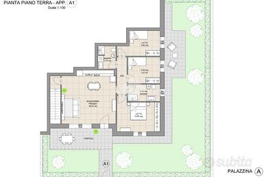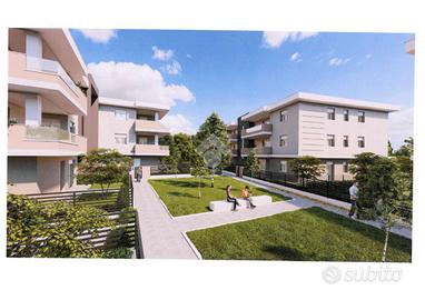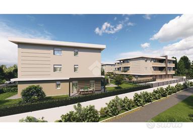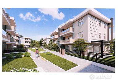 CASALGRANDE: In nuovo complesso immobiliare di quattro palazzine, servite da pedonali e giardini, appartamento in classe energetica A4 al piano terra, in zona tranquilla, comoda ai servizi e al centro del paese, con riscaldamento autonomo a pavimento e fotovoltaico privato. Composto da; soggiorno con angolo cottura di 30 mq., portico , disimpegno, tre camere e due bagni. Giardino privato di 140 mq. Garage doppio al piano interrato collegato internamente all' appartamento. Consegna a fine 2027, finiture interne personalizzabili.