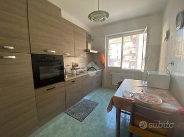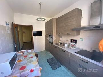 L'alloggio è posto al primo piano di una palazzina ordinata dotata di ascensore ed internamente è composto da ingresso arredabile, ampio soggiorno di circa 25 metri quadrati con affaccio sull'ampia balconata che comprende tutta la proprietà, il corridoio ci conduce al primo dei due servizi igienici completi di vasca e box doccia, cucina abitabile e le due camere da letto ed infine un'utile dispensa.