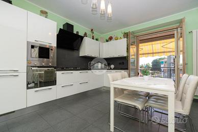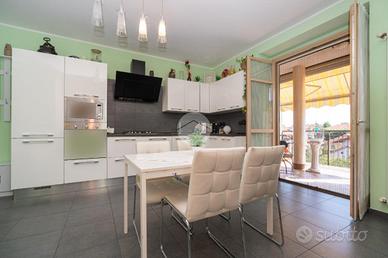 La palazzina edificata nel 2013 è situata in una zona tranquilla del paese, a pochi passi dalla stazione del treno e prossima anche al centro storico. L'appartamento si trova al secondo ed ultimo piano dello stabile dotato di ascensore. L'alloggio è stato ristrutturato con finiture moderne. Dalla porta blindata si accede alla cucina abitabile dotata di ampio terrazzo, completo di tende estive ed invernali, ideale per le calde giornate estive o momenti di relax. Il disimpegno conduce ad un'ulteriore stanza attualmente adibita a salotto ed al bagno finestrato dotato di doccia. La zona notte si trova al piano superiore mansardato, raggiungibile tramite una comoda scala interna oppure dalla scala condominiale ed è composta da due ampie camere da letto molto luminose ed ariose grazie alla presenza di finestre in ogni ambiente. Completa il piano il bagno finestrato dotato di vasca. Il riscaldamento è autonomo e la cantina sita al piano interrato completa la proprietà. Questo immobile è ideale per chi cerca spazi ampi con la possibilità di ricavare tre camere da letto, di cui una al primo piano abitativo. Si trova, inoltre, fuori dalla rotta aerea, ma comunque prossimo a tutti i servizi offerti dal paese.