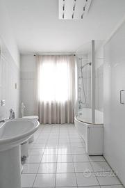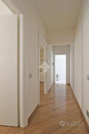 Il lungo corridoio invita nelle due camere matrimoniali con affaccio ad Est e in fondo al bellissimo e grande bagno impreziosito da una confortevole vasca/doccia idromassaggio.