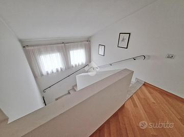 Tornando all'ingresso, accompagnati dai caldi pavimenti in parquet, è possibile attraverso la scala interna raggiungere il vero fiore all'occhiello della casa: la sua stupenda e luminosissima mansarda openspace, completa di bagno (doccia) e ripostiglio dove è possibile, grazie anche al godibile terrazzino, creare una elegante terza camera matrimoniale con angolo studio annesso o un locale da adibire alle proprie passioni o allo smart-working.