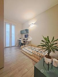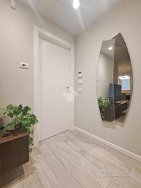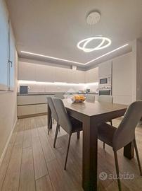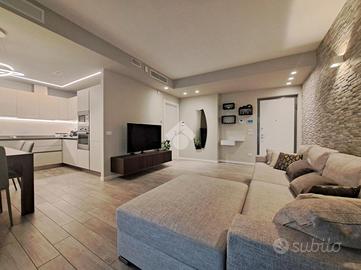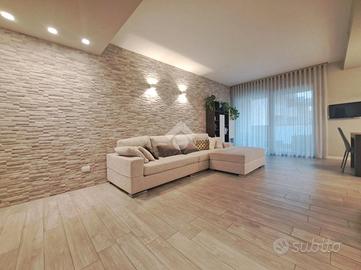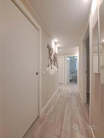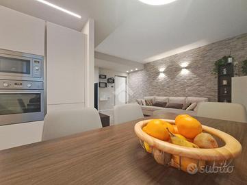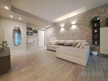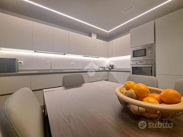 Signorile mini-palazzina immersa nella quiete nella natura della zona Vallette. Del 2019 l'edificio vanta condizioni estetiche perfette abbellite da piacevoli inserti in pietra ed è protetto da isolamento termo-acustico. Con i suoi tre piani fuori terra la struttura è sormontata da pannelli fotovoltaici per l'alimentazione delle parti comuni tra cui gli accessi pedonale e carraio automatizzati e l'ascensore con arrivo ad ogni livello. Le parti comuni sono essenziali ed espongono a spese condominiali contenute. Sono inoltre presenti impianti videocitofonico e di TV Satellitare. L'appartamento si posiziona al piano primo intermedio e oltre a vantare una luminosa tripla esposizione Sud-Ovest-Nord si presenta come un vero portento tecnologico e dalle finiture di pregio. L'accesso dalla porta blindata (serratura europea) invita nella grande zona living di 35 mq dove la cucina abitabile si apre sul salone. Il rivestimento in pietra si coniuga perfettamente con i moderni pavimenti in gres "effetto parquet" e le tonalità neutre vengono messe in risalto dall'illuminazione a led e a faretto. Il terrazzo è un plus importante e regala, oltre che un'ottima vista, un perfetto sfogo da sfruttare durante la bella stagione. La zona notte, che si estende a partire da un lungo disimpegno, si divide tra le 3 camere da letto (la matrimoniale e 2 camere singole), intervallate dai 2 eleganti bagni finestrati (vasca e doccia) accessoriati di sanitari sospesi e termo-arredi. Le 2 camerette sono avvalorate dalla presenza di un balcone ciascuna. Non mancano i locali più utili come il ripostiglio e l'angolo lavanderia, ben celato nel disimpegno ma vitale per mantenere i bagni in ordine. Le condizioni della casa sono perfette. Le porte interne sono a battente o a scomparsa e non mancano dotazioni di ultima generazione. Si va dal moderno sistema VMC per il ricircolo dell'aria, passando per il sistema "gas free" con piano a induzione, fino ad arrivare all'impianto elettrico differenziato. È pr...