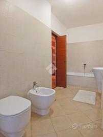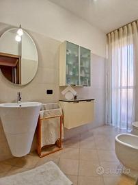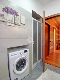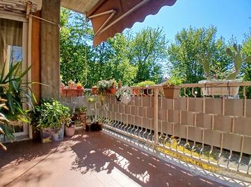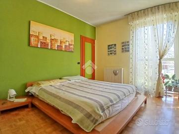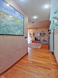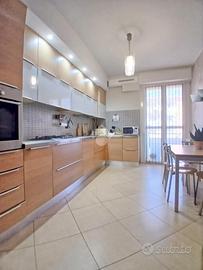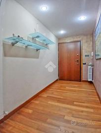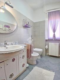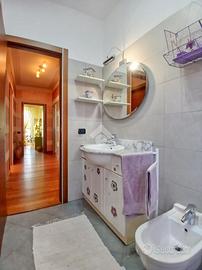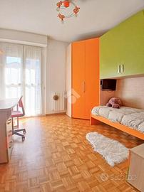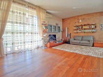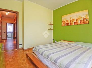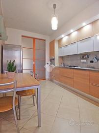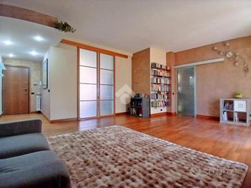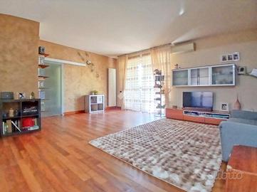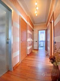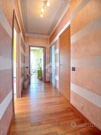 Curato condominio in zona servita del paese. A breve distanza dai mezzi di trasporto e dalle scuole, l'edificio si divide in quattro scale ed è circondato da un curato giardino. Gli accessi pedonale e carraio sono automatizzati, Dal castelletto di ingresso con le sue nuove cassette postali esterne e passando dal grande porticato coperto fino al vano scala completo di ascensore si segnala la totale assenza di barriere architettoniche. L'appartamento si trova al piano primo e beneficia di una tripla esposizione Nord-Est-Sud. La sagoma quadrata unita ai 140 mq commerciali di superficie lo rendono una soluzione perfetta per famiglie con più figli o per coppie che desiderano avere un locale hobby o un utile studio per lavorare da casa. L'ingresso è illuminato da eleganti faretti a soffitto che accompagnano dalla porta blindata al gigantesco salone con uscita sul terrazzo principale della casa. Qui sarà possibile ritagliarsi momenti di puro relax e privacy grazie alla presenza delle tende da sole. Uno degli elementi di spicco della zona giorno è sicuramente la meravigliosa doppia porta scorrevole che consente di separare la gigante cucina abitabile dal resto del salone o all'occorrenza fondere i due ambienti in un living da sogno. Il disimpegno, con accesso da una seconda porta scorrevole in cristallo, si allunga attraverso la zona notte mettendo a disposizione una camera matrimoniale impreziosita da cabina armadio ed accesso al terrazzo del soggiorno, due camere da letto singole (una con balcone), un utile ripostiglio e i due magnifici e luminosi bagni. Quello principale con vasca e moderni termo-arredi cromati che condivide un balcone con la cucina e quello secondario dove trovano spazio doccia e lavatrice. Le condizioni interne della casa sono perfette e fondano il proprio risalto sulla ristrutturazione avvenuta circa 15 anni addietro e che ha interessato pavimenti (si alternano la delicata ceramica e l'elegante parquet "wengé"), porte interne (a battente o a libr