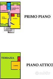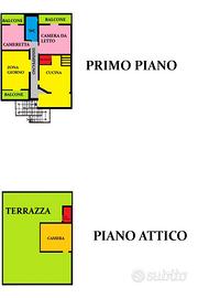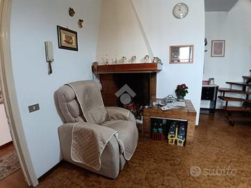 Al primo piano l'ingresso si apre su un soggiorno accogliente e ben proporzionato, collegato a una cucina abitabile dotata di cucinino e camino, elementi che donano calore e funzionalità. La zona notte comprende due camere da letto di generose dimensioni e un bagno. Dal soggiorno una scala interna conduce al secondo piano, dove si trova un'ulteriore camera con servizio. Da qui si accede a un ampio terrazzo di circa 100 mq, un ambiente esterno che rappresenta un vero valore aggiunto: uno spazio aperto e riservato da vivere in ogni stagione.A completare la proprietà, al piano terra, un garage di circa 30 mq offre comodità e praticitàL'immobile necessita di lavori di rimodernamento, ma si presta a diventare una casa funzionale e accogliente, perfetta per chi desidera personalizzare gli ambienti secondo il proprio stile.