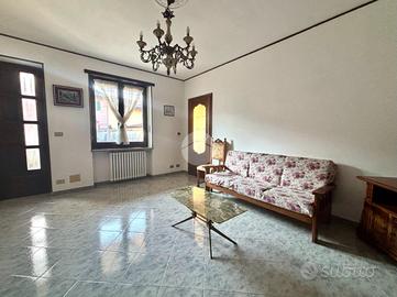 In una zona tranquilla e comoda ai servizi, proponiamo in vendita una porzione di bifamiliare al piano terra con ingresso carraio e pedonale completamente indipendente. L'abitazione si apre su un luminoso soggiorno che conduce alla cucina abitabile, dotata di un locale annesso adibito a dispensa, ideale per chi desidera uno spazio aggiuntivo funzionale. La zona notte comprende due camere da letto, di cui una matrimoniale, e un ampio bagno con doccia.