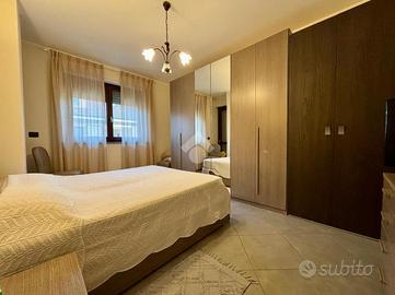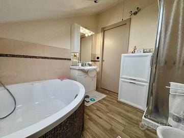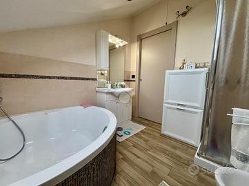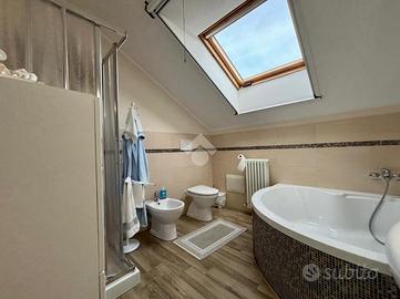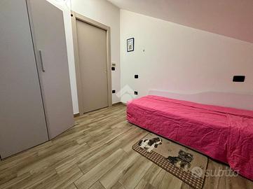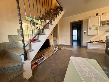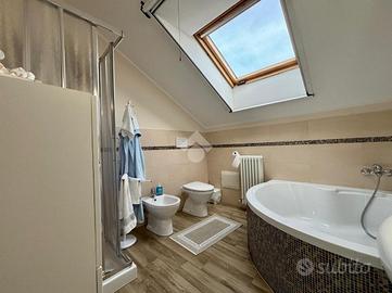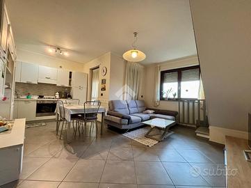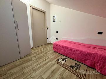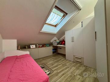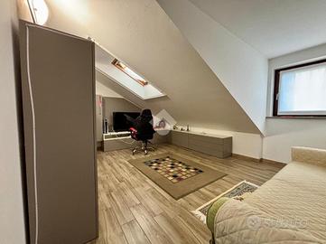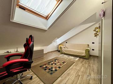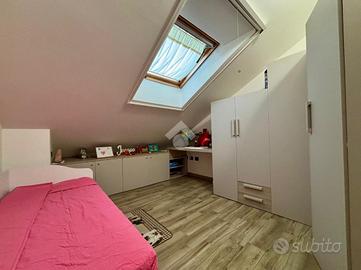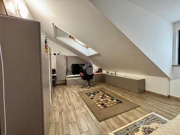 Soluzione recente e curata nei dettagli. Ampio soggiorno living con cucina a vista. Una camera matrimoniale al piano. Sono presenti i servizi su entrambi i livelli della casa. Il sottotetto è accessibile con scala in muratura dal soggiorno ed è suddiviso in due stanze e bagno. L'affaccio è su un lato su terrazzino coperto ideale per stare all aperto o pranzare nella bella stagione, e su un lato su balcone. Sono di pertinenza cantina e boxauto. Il riscaldamento è a pavimento qundi con ottima resa perchè distribuita in tutti gli spazi della casa.