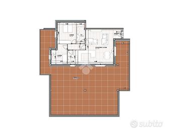 L'appartamento dispone di due camere da letto e due bagni, garantendo comfort e privacy.