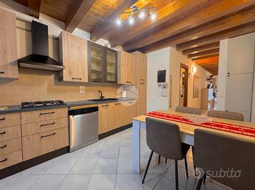 In contesto di sole 3 unità abitative e di recente costruzione, proponiamo abitazione al piano terra divisa in due porzioni da una corte eslusiva. L'immobile è composto nella prima porzione da cucina abitabile, soggiorno e bagno cieco con doccia. Dal soggiorno si accede alla corte esterna di proprietà per poi proseguire nell'altra porzione della soluzione, composta al piano terra da un'ampia camera matrimoniale, al piano primo da un'altra camera singola ed un bagno finestrato con doccia. NO SPESE CONDOMINIALI, ARREDAMENTO INCLUSO.