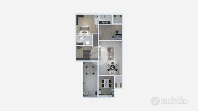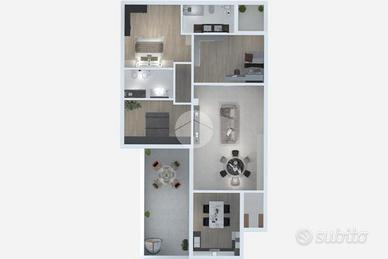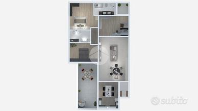 L'appartamento è composto da ampio soggiorno, cucina separata abitabile entrambi con sbocco sull'ampio loggiato ideali per momenti di relax e sfruttare le serate estive in compagnia e ripostiglio funzionale. Tramite disimpegno si accede alla zona notte composta da un bagno finestrato, una camera da letto matrimoniale con secondo bagno finestrato padronale, una camera doppia e una seconda camera doppia con accesso diretto al balcone.