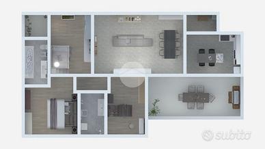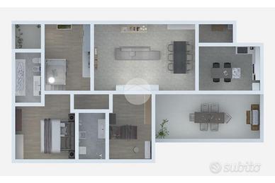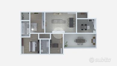 La classe energetica A4, il sistema fotovoltaico e la pompa di calore assicurano un'elevata efficienza energetica. L'appartamento è composto da ampio soggiorno, cucina separata abitabile entrambi con sbocco sull'ampio loggiato ideali per momenti di relax all' aperto. Completano la soluzione un bagno finestrato, una camera da letto matrimoniale con secondo bagno finestrato padronale, una camera doppia, una seconda camera doppia con accesso diretto al balcone.