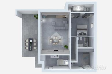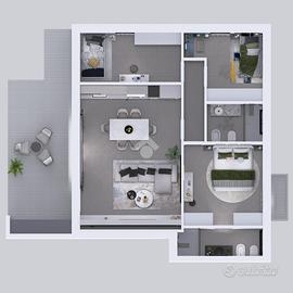 CASTEL MELLA: nelle vicnanze di Roncadelle proponiamo un elegante quadrilocale, progettato in classe A4, ideale per chi cerca spazi ampi, ben distribuiti e un elevato livello di comfort abitativo. Situato in una quadrifamiliare di nuova costruzione, l'appartamento si distingue per la luminosità degli ambienti e la funzionalità degli spazi. La soluzione è completamente indipendente, con accesso privato, garantendo la massima autonomia e riservatezza. L'ingresso si apre su una spaziosa zona giorno, composta da un ampio soggiorno e una moderna cucina a vista. L'area living è resa ancora più accogliente grazie all'ampia vetrata di 3,30 m che regala luce naturale e permette l'accesso diretto a un grande portico coperto di oltre 20mq, perfetto per pranzi e cene all'aperto. Il soggiorno si affaccia su un giardino privato, che offre un ampio spazio ideale per chi ama vivere a contatto con la natura. La zona notte, ben separata, comprende tre camere da letto di generose dimensioni, tutte progettate per offrire il massimo del comfort e della privacy. La camera matrimoniale dispone di bagno padronale. I doppi servizi, entrambi finestrati e ben distribuiti, sono stati pensati per garantire funzionalità e praticità. Un comodo box auto doppio completa la proprietà. Dal box, attraverso una scala interna, si accede direttamente al portico privato dell'appartamento, senza dover passare per zone comuni, garantendo un ulteriore livello di privacy e comodità. Il comfort abitativo è assicurato da un avanzato impianto di riscaldamento e raffrescamento a pavimento, alimentato da una pompa di calore. La Ventilazione Meccanica Controllata con sistema di deumidificazione mantiene costantemente un'aria fresca e salubre. A garantire un elevato livello di efficienza energetica, l'immobile è inoltre provvisto di un impianto fotovoltaico. Possibilità di personalizzazione delle rifiniture su richiesta. Un'opportunità unica per chi desidera una casa spaziosa, moderna e confortevole, con u