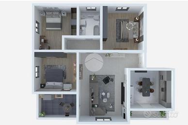 L'immobile è composto da ampio soggiorno con sbocco sul loggiato vivibile ideale per momenti di relax all'aperto, visto la presenza del bbq privato ottimo per pranzi e cene in compagnia o semplicemente per godersi un momento di tranquillità in totale privacy. Cucina separata abitabile dotata di balcone che migliora la luminosità e la vivibilità degli ambienti, tre ampie camere matrimoniali che offrono comodi spazi per la famiglia o per gli ospiti e bagno finestrato dotato di vasca.