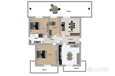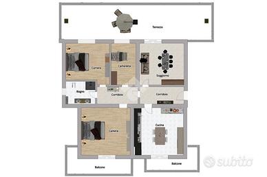 L'edificio è dotato di ascensore, mentre la sua ampia metratura offre spazio sufficiente per tutta la famiglia. Ingresso tramite corridoio alla zona giorno, che ospita la cucina abitabile con camino, da qui si accede ad un comodo piccolo balcone. Ampio soggiorno pranzo che si apre su un grande terrazzo, perfetto per cene all'aperto e momenti di relax all'aria aperta.