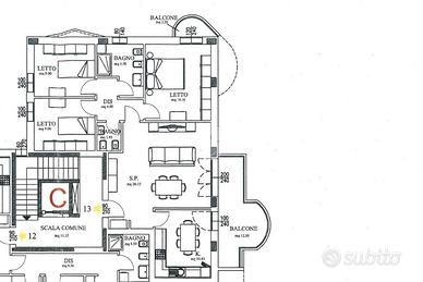 L'appartamento, posto all'ultimo piano è sviluppato su un unico livello, ed è composto da: ingresso su soggiorno con angolo cottura separato, terrazzo di 12mq, disimpegno, tre camere di cui una con balcone e due bagni.