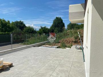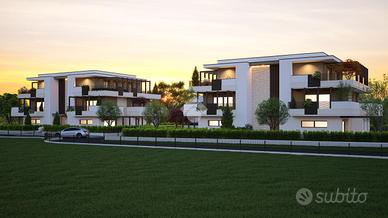 Appartamento quadrilocale composto da un'ampia zona giorno di 40 mq con cucina e salotto open-space dalla quali si accede agli 800 mq di giardino privato. Nella zona notte troviamo due camere singole, due bagni e una camera matrimoniale. Conclude la proprietà un garage di 40 mq al piano interrato, con accesso dal vano scale. L'appartamento dispone di un'accesso indipendente.