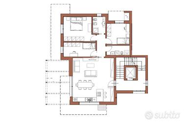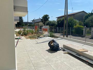 Appartamento quadrilocale composto da un'ampia zona giorno di 40 mq con cucina e salotto open-space dalla quali si accede agli 250 mq di giardino privato. Nella zona notte troviamo due camere singole, due bagni e una camera matrimoniale. Conclude la proprietà un garage di 40 mq al piano interrato, con accesso dal vano scale. L'appartamento dispone di un'accesso indipendente.