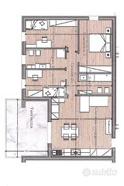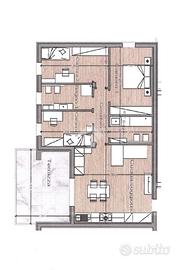 Varcando la soglia dell'ingresso, veniamo accolti da una zona giorno ampia e luminosa di 31 mq, un ambiente moderno e accogliente, ideale per la vita quotidiana e per momenti conviviali.