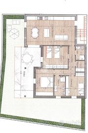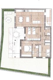 La zona living gode di due accessi diretti all'area esterna: uno da sul giardino privato di 98 mq, l'altro invece sul portico di 20 mq, ideale per pranzi e cene all'aperto, garantendo così continuità tra l'ambiente interno ed esterno.