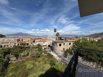 In una zona tranquilla e riservata, lontana dal caos cittadino ma comunque ben collegata al centro di Castellammare di Stabia, precisamente in Strada Panoramica, proponiamo in vendita un ampio appartamento di quattro vani e doppi accessori, di metratura interna di circa 115 mq. L'immobile è ubicato al terzo piano di un condominio servito da ascensore. L'ingresso si apre su un disimpegno accogliente, che conduce al corridoio centrale, vero e proprio cuore della casa, capace di separare armoniosamente i vari ambienti garantendo privacy e comfort. Sul lato sinistro del corridoio, si sviluppa un ampio doppio soggiorno, impreziosito da due finestre che regalano una splendida vista panoramica, inondando di luce naturale tutta la zona giorno. Sempre su questo lato è presente il primo servizio igienico, pratico e funzionale, perfetto anche per gli ospiti. Sul lato destro, troviamo una cucina abitabile con accesso diretto al balcone, ideale per momenti di relax. A seguire, la prima camera da letto, luminosa e ariosa, dotata di balcone angolare. In fondo al corridoio giungiamo alla seconda camera da letto, anch'essa con accesso al balcone panoramico, offrendo un'atmosfera riservata. Adiacente, il secondo servizio igienico, perfettamente posizionato per servire la zona notte, garantendo maggiore comodità e privacy. A completare la proprietà, un box auto di 16 mq, soluzione ideale per il parcheggio in piena sicurezza. Se vuoi fissare un appuntamento contattaci ai seguenti recapiti: - Ci troviamo in Via Guglielmo Marconi 69, Castellammare di Stabia. Ti aspettiamo!