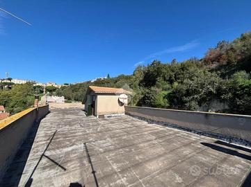 Dotato di doppio ingresso è così suddiviso: disimpegno che funge da ingresso, ampio salone con balcone, cucina abitabile anch'essa con balcone, tre camere da letto di cui una con balcone, corridoio, bagno con doccia e bagno di servizio. Completo di terrazzo di 116 mq raggiungibile da scala interna.