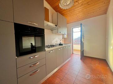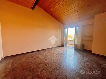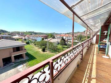 L'alloggio si trova in centro Castelnuovo Don Bosco, comodo a tutti i servizi, vicino alla fermata dei pullman. L'appartamento è situato al terzo e ultimo piano di una palazzina in paramano edificata nel 1977, gode di piacevole vista ed è munito di ascensore. L'ingresso dell'abitazione, tramite portoncino blindato, è sul soggiorno con uscita sul primo balcone. Il corridoio disimpegna le altre camere. Il tinello è separato dalla cucinotta, anch'essa con uscita sul secondo balcone. Le due camere da letto sono ampie, ognuna con uscita sul balcone. Il bagno dotato di vasca ha l'uscita sul terzo balcone. Il riscaldamento è autonomo alimentato dai radiatori da una caldaia a metano, vi è la possibilità di riscaldarsi con stufe grazie alla presenza di canna fumaria privata. Il soffitto è stato da poco coibentato in modo da contenere i costi di riscaldamento. I serramenti esterni sono in legno doppio vetro come le gelosie esterne. I pavimenti sono originali di fine anni 70 e nelle camere da letto è presente il parquet. L'impianto elettrico e sanitario sono originali e funzionanti. E' possibile acquistare anche il box auto singolo a € 9.000,00. Possibilità di affitto a riscatto