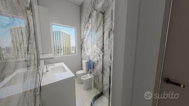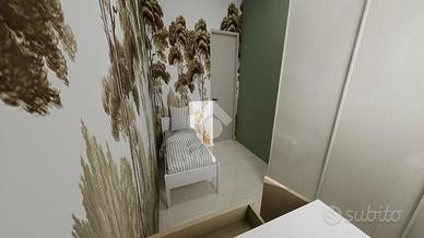 L'appartamento si sviluppa tutto su un piano ed è composto da un'ampia zona giorno openspace, dotata di angolo cottura e zona relax composta da divano e parete attrezzata. Tramite un lungo corridoio si accede alla zona notte composta da 3 camere, 2 camere matrimoniali e una camera singola, e da 2 bagni finestrati con box doccia.