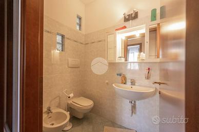 Completano la proprietà due bagni moderni e ben rifiniti, pensati per offrire il massimo del benessere quotidiano. La posizione centrale, unita alla quiete del contesto, rende questa soluzione perfetta per chi desidera vivere nel cuore del paese senza rinunciare alla praticità.