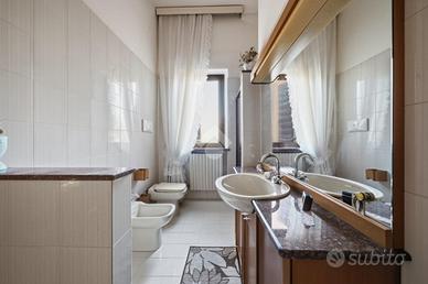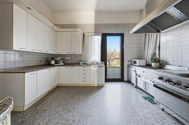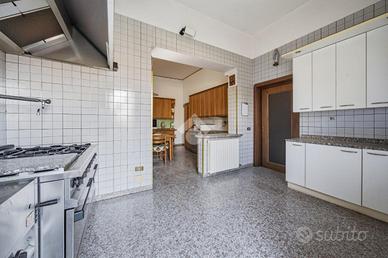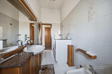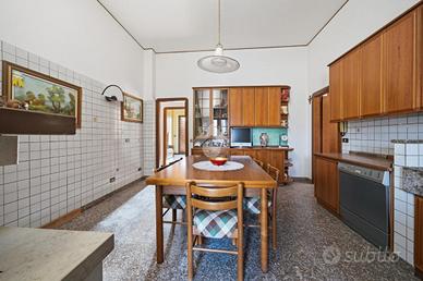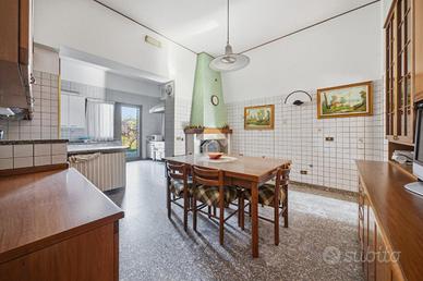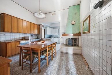 Disposto sul piano terra è composto da ampia cucina collegata alla sala da pranzo con camino, tre camere da letto, servizio finestrato e ripostiglio.