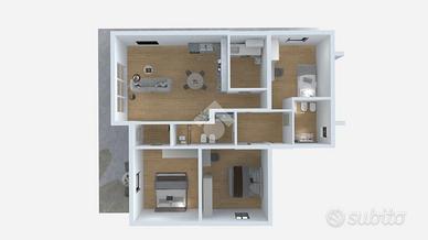 L'immobile offre ampi spazi da personalizzare secondo le proprie esigenze con la possibilità di realizzare al suo interno tre camere da letto e due bagni, mantenendo una zona giorno comoda e funzionale.