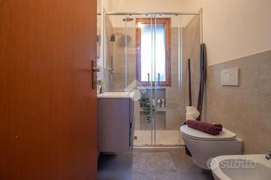 L'appartamento dispone di tre camere da letto, una delle quali dotata di bagno privato, garantendo privacy e comodità, un secondo bagno recentemente ristrutturato serve le altre aree della casa.
