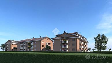 CERVIGNANO D' ADDA: signorile palazzina di NUOVA COSTRUZIONE in classe energetica A. Appartamenti di varie tipologie e metrature, dal monolocale al 4 locali, con riscaldamento a pavimento, completi di cantina e con possibilità di acquisto del box. Le finiture interne di ogni abitazione possono essere personalizzate. Consegna prevista per marzo 2027. Al piano secondo proponiamo appartamento di quattro locali composto da soggiorno con affaccio sul balcone, cucina abitabile, camera matrimoniale, due camerette di cui una con balcone, doppi servizi e due ripostigli.