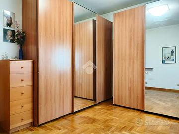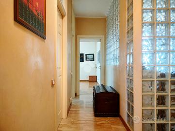 Dal disimpegno si accede alla zona notte costituita da due camere matrimoniali, cameretta e doppi servizi.