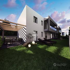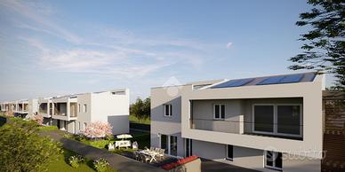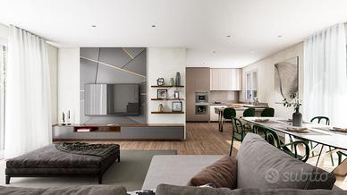Via Trieste in zona ben servita, proponiamo in vendita appartamenti di 4 locali al piano terra con giardino ed al piano primo con terrazzi. Qui proposto il 4 locali al piano primo composto da soggiorno, cucina abitabile, tre camere, due bagni, terrazzo, balcone, cantina e box doppio compreso. La soluzione è visionabile in cantiere con consegna prevista per primavera 2026. L'immobile sarà certificato in Classe A. È evidente come il raggiungimento della Classe A per gli edifici sia condizionato dall'impiego di impianti più efficienti, dall'uso di materiali di ultima generazione, mettendo in campo tecnologie che sfruttano fonti energetiche rinnovabili, pompe di calore e fotovoltaico, il tutto con una logica di costi-benefici. Il progetto ha voluto puntare fortemente su questi aspetti attraverso l'ottimizzazione impiantistica e costruttiva degli edifici, mirando al risparmio dei consumi energetici. Le case certificate in Classe A beneficeranno nei prossimi anni, di un incremento di valore. I sistemi costruttivi adottati, l'uso di materiali di ultima generazione ed il controllo garantiscono il raggiungimento di un comfort acustico ottimale. Le soluzioni adottate per l'impianto di riscaldamento sono pensate decisamente nella direzione del risparmio energetico e del comfort di qualità abitativa superiore. L'impianto di riscaldamento sarà di tipo Autonomo del tipo ibrido, a funzionamento misto Gas/Elettrico. Le fonti di energia sono infatti una caldaia a condensazione e una pompa di calore ad alta efficienza energetica, per la produzione di acqua calda sanitaria e riscaldamento/raffrescamento nel periodo estivo. L'espansione dell'energia non sarà diretta ma bensì accumulata in dei piccoli serbatoi, uno dedicato all'acqua sanitaria (integrato nel pannello) e l'altro al riscaldamento/raffrescamento posizionato in appartamento (incassato su un muro esterno). Le unità immobiliari saranno riscaldate con il moderno sistema composto da pannelli radianti a pavimento, ch