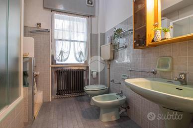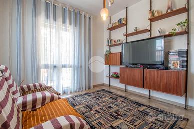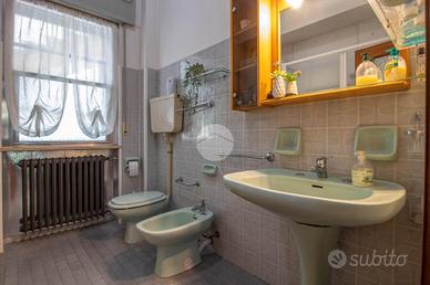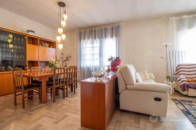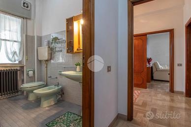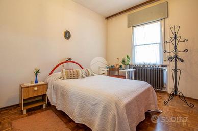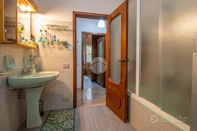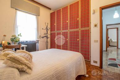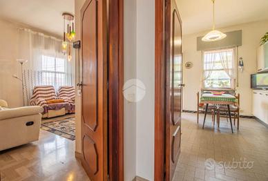 La soluzione è composta da un comodo ingresso, un ampio soggiorno con cucina abitabile, entrambe con accesso al balcone che circonda la proprietà. Bagno finestrato e dotato di vasca, una camera da letto matrimoniale con accesso sempre al balcone, altre due camere da letto ed uno studio.