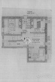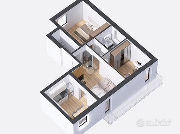 La zona notte comprende due camere da letto, una matrimoniale anch'essa con accesso al balcone della zona giorno e una camera doppia. Bagno finestrato, dotato di box doccia e attacco per la lavatrice.