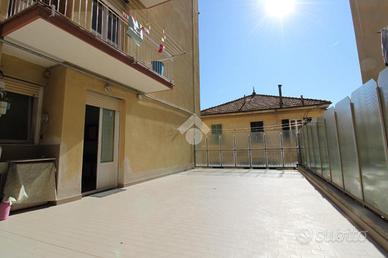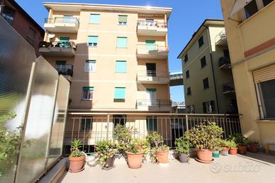 Chiavari -Via San Pier di Canne-Proponiamo in vendita un appartamento sito al primo piano con ascensore. L'appartamento è composto da: ampio ingresso, soggiorno con balcone, cucina comunicante con un terrazzo di proprietà di 60mq, un bagno e due camere da letto entrambi matrimoniali. L'ampia metratura potrebbe permettere di ricavare una terza camera e un ulteriore bagno. Grazie alla tripla esposizione, l'immobile gode di ottima luminosità. L'appartamento si trova in una posizione comoda ai servizi ed è a circa 15 minuti a piedi dal centro storico. A completare l'immobile una cantina di proprietà. Il riscaldamento è centralizzato. Nell'assemblea di Giugno 2025 sono stati deliberati i lavori di rifacimento delle facciate che rimarranno a carico della parte venditrice. Per maggiori informazioni rivolgersi in agenzia.