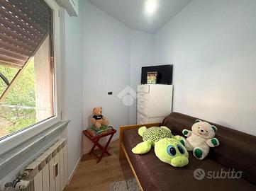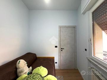 L'appartamento si compone di un ampio ingresso su zona giorno open space, due camere matrimoniali, di cui una con bagno privato, una cameretta adibita a studio, un bagno finestrato con doccia e un comodo ripostiglio.