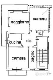 L'abitazione è situata all'ultimo piano di un piccolo stabile con poche unità abitative. La zona risulta essere immersa nel verde e tranquilla, ma a pochi minuti di macchina per i principali servizi. L'ingresso è su un disimpegno di ampie dimensioni con un comodo ripostiglio che accompagna alle due camere da letto, entrambe con balconi ampi ed angolari. Il soggiorno è finestrato ed è separato dalla cucina, anch'esso con sfogo esterno sul balcone in comune con una delle due camere da letto. Il bagno è finestrato e provvisto di doccia. L'appartamento risulta essere allo stato originale anni '70 circa. Il riscaldamento è autonomo e le spese condominiali sono irrisorie. Al piano interrato è a disposizione una cantina.