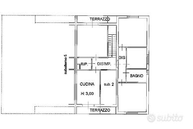 L'ingresso conduce a una scala privata che accompagna all'interno dell'abitazione, dove troviamo un ampio disimpegno che divide la zona giorno dalla zona notte.