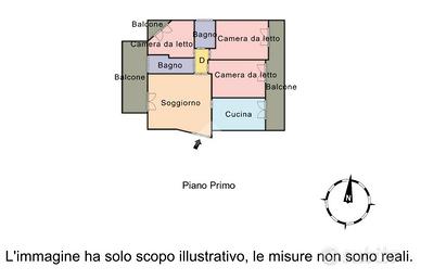 L'immobile vede la seguente distribuzione interna: cucina abitabile con affaccio su balcone, ampio soggiorno anch'esso con affaccio, tre camere da letto tutte con affaccio e infine due bagni finestrati uno con vasca mentre l'altro con box doccia.